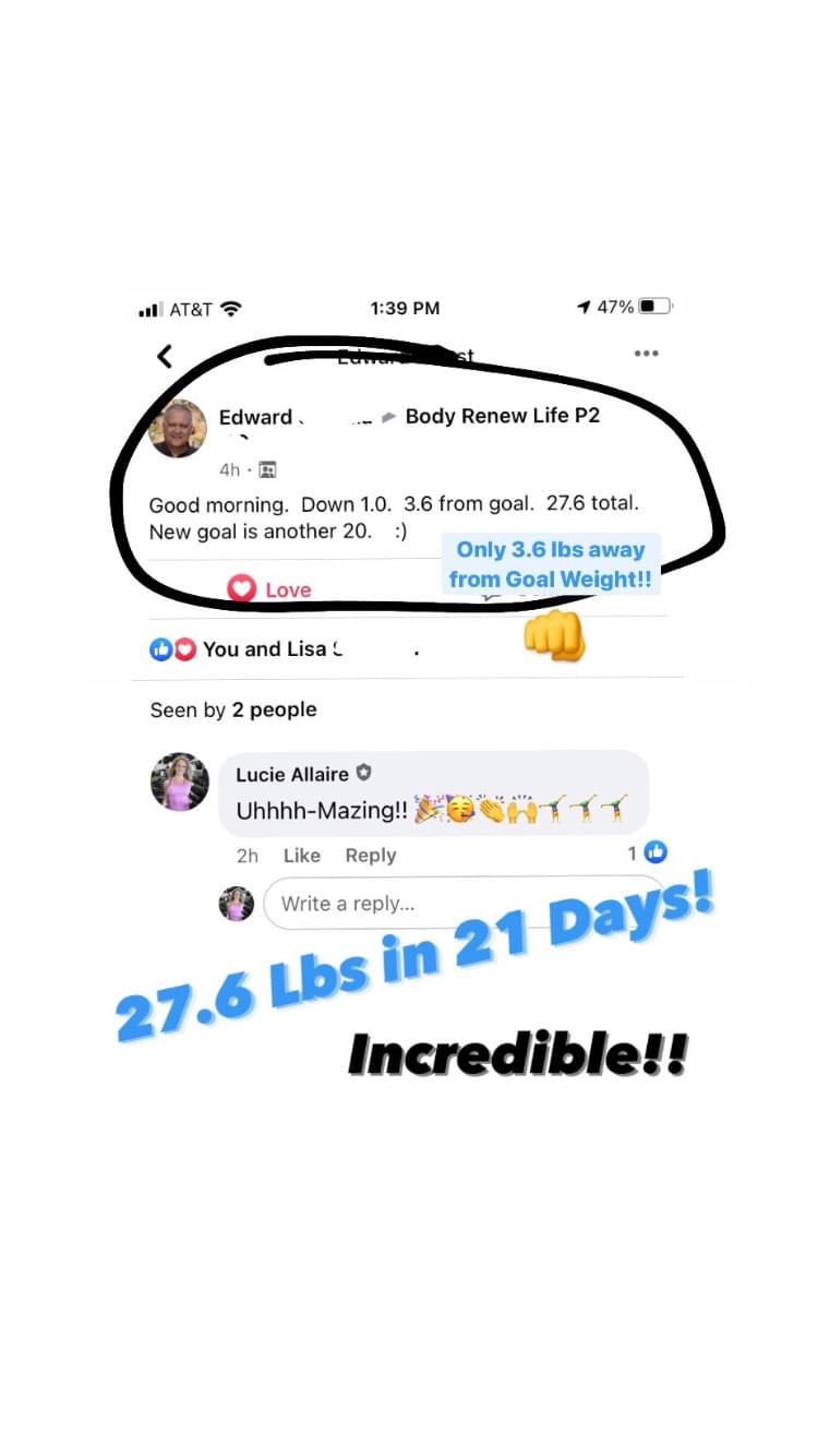 Weight Loss representations made by Body Renew Life LLC, are aspirational statements only of your weight loss potential. The success of Body Renew Life LLC, testimonials and other examples used are typical results for those that follow the protocol exactly, but are not intended to be and are not a guarantee that you or others will achieve the same results. Individual results will always vary and yours will depend entirely on your individual capacity, commitment level, dedication, level of motivation, diligence in applying the Body Renew Life LLC advice, the normal and unforeseen temptations that surround you, and other factors.